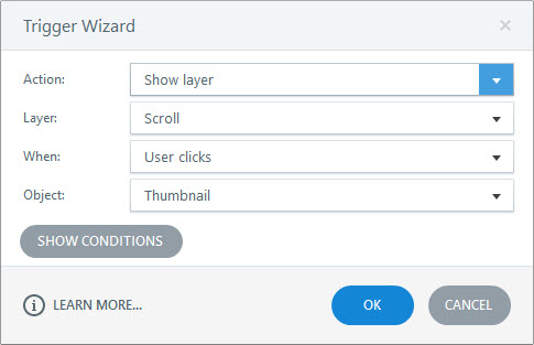 8. On the Base Layer, add a new trigger to the thumbnail to show the layer.