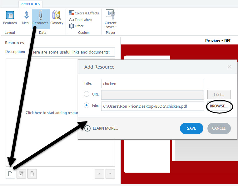 • Add the document to the Resources tab in the Player