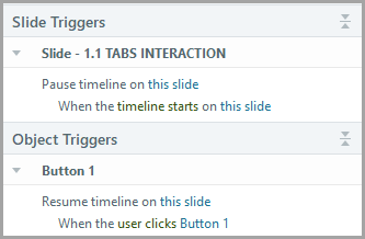 - Then, add a final trigger that “resumes the timeline when the user selects” that button.