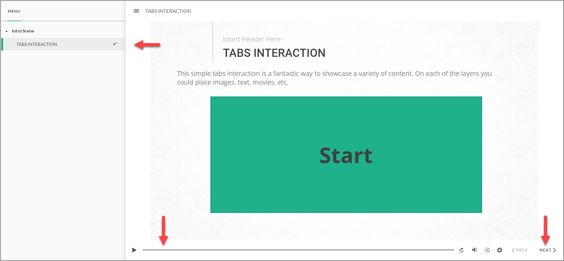 By turning the player off, the interaction is displayed without any surrounding border, navigation buttons, or visible player interface. The interaction itself takes up the maximum screen space, and looks more integrated or seamless within your Rise content.