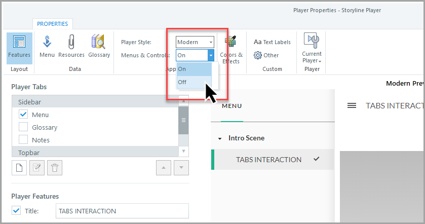 To turn the player off, open the Player Properties window from the Home tab. Then, change the setting called Menus & Controls to Off.